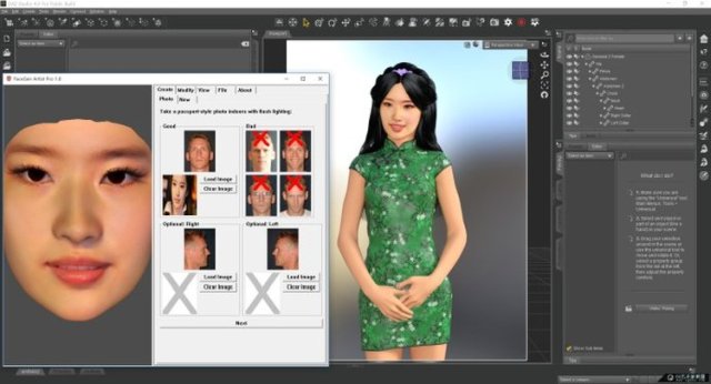 FaceGen Artist - программа для создания реалистичных моделей лица для ПО Daz Studio и использования готовых персонажей в своих интерактивных проектах. Имеет инструменты для создания лиц из ваших фотографий или случайным выбором, работать можно как с одним снимком так и целым пакетом. В редакторе при помощи бегунков можно менять возраст, пол, расу, а также другие 150 параметров.