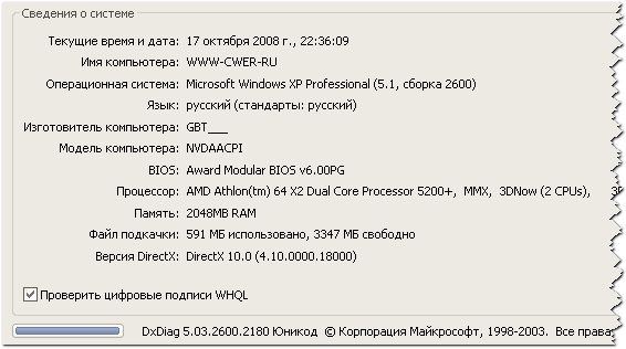 Скриншот, подтверждающий установку DirectX 10 на Windows XP. У меня Crysis Warhead перестал тормозить после установки DirectX 10 CF да и со звуком все тип топ.