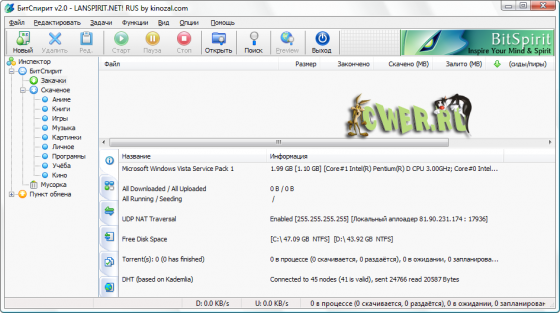 BitSpirit - мощный и удобный в использовании клиент BitTorrent, который не только работает по этому протоколу, но также имеет ряд дополнительных возможностей.Среди них следует отметить: удобный и понятный интерфейс, возможность работы сразу с несколькими закачками, механизм кеширования данных на диск, быстрое восстановление работы, поддержка выбора файлов, удобный файловый менеджер, поддержка опции обмены сообщениями, компрессия по алгоритму GZip, работа по расписанию, интеграция в IE, поддержка HTTP/SOCKS4/5 Proxy, малая требовательность к ресурсам ПК.