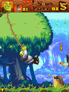 - Платформер с 4 персонажами: Шреком, Ослом, Котом и Пряничным человечком.