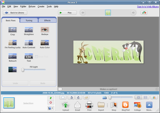 При каждом запуске Picasa автоматически определяет местоположение фотографий на жестком диске и сортирует их в визуальные альбомы, упорядоченные по датам, так что потеряться ни одной картинке не удастся. С помощью Picasa можно легко и быстро отправлять фотографии по электронной почте, печатать их, создавать компакт-диски и даже размещать фотографии в веб-блоге. Программа позволяет одним нажатием применять разнообразные визуальные эффекты, а также вносить исправления - кадрировать, удалять эффект "красных" глаз, производить коррекцию контрастности, насыщенности, "осветлять" фотографии и т.п.