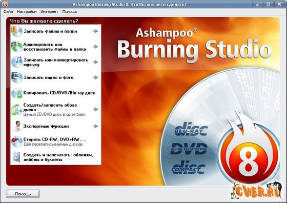 С самого первого выпуска Ashampoo Burning Studio 8 изменила представление о привычном программном обеспечении для записи. Вместо того, чтобы тратить время на подробное изучение сотни сложных свойств, вам надо всего лишь выбрать задание, например - «Записать файлы», «Дублировать файлы» или «Записать фильм», а затем программа поможет вам сделать все необходимое. Вы всего лишь выбираете нужный формат, файлы, и записываете диск. Это легко, но легкость не означает, что у вас меньше функциональных возможностей: усовершенствованные функции записи доступны и опытным пользователям, которые хотели бы выбрать специфические системные файлы или воспользоваться специальной областью начальной загрузки.