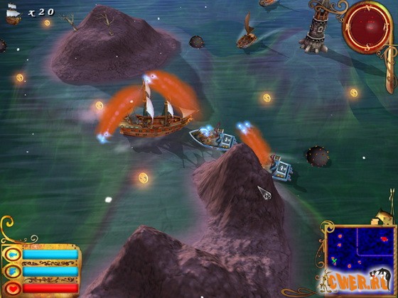 Вам предстоит стать капитаном боевого фрегата и отправиться в полное опасностей путешествие по бескрайной водной глади. Ваша цель — свержение с мирового престола главного пирата. Морской путь полон опасностей и неожиданностей: вам предстоит истреблять бесчисленные полчища противников, избегать вражеских атак, обходить стороной коварные ловушки и собирать золото, оружие и другие бонусы.