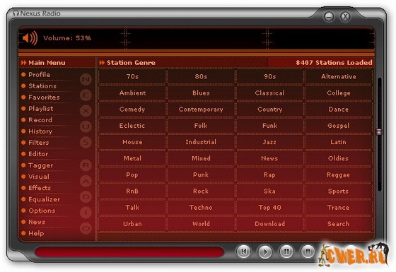 Nexus Radio – не просто плеер онлайн-радио, помимо целого ряда функций и стильного графического интерфейса, программа поддерживает 8000 интернет-станций. С помощью Nexus Radio можно не только слушать музыку любого стиля, но и записывать дорожки из эфира в MP3 формат. Никаких трудностей данная операция не вызовет. Трек записывается не только при нажатии на кнопку Record, но и в указанный период времени и даже день.