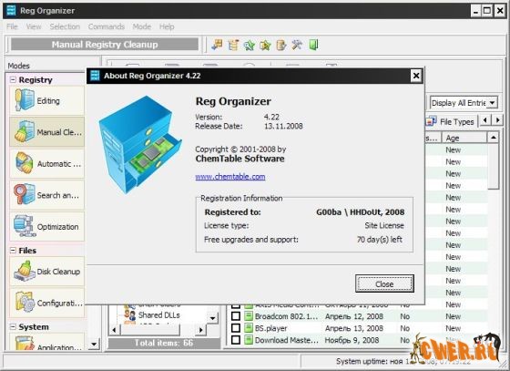 Скачать Reg Organizer v4.22 Portable (2,48 МБ):