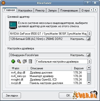 RivaTuner - полномасштабная среда для настройки любых видеокарт, основанных на графическом процессоре NVIDIA. Широчайший набор опций настройки API Direct3D/OpenGL и системы на уровне драйвера, гибкая система шаблонов, позволяющая устанавливать опции для каждого приложения индивидуально, уникальные возможности по диагностике и аппаратному мониторингу в реальном времени и мощные инструменты, такие как встроенный редактор реестра и скриптовый механизм реализации патчей делают инструментарий RivaTuner непревзойдённым...