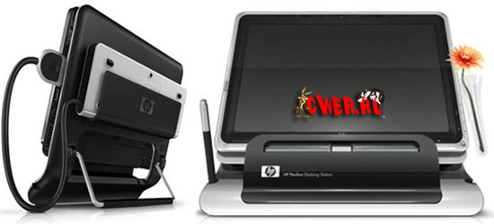 Идущий в комплекте пульт дистанционного управления может никогда не потеряется, так как в корпусе Tablet-PC для него есть специальный отсек. А с помощью универсальной док-станции HP QuikDock малыша TouchSmart tx2z можно подключить к интернету, сети электропитания и периферии одним кабелем.