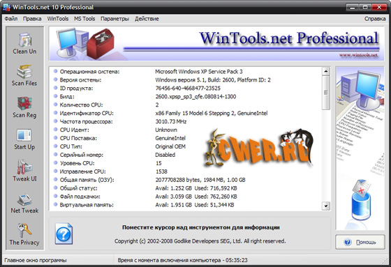 WinTools.net Professional – набор инструментов для оптимизации операционной системы Windows. В состав программы входят компоненты для полного удаления нежелательных программ и «мертвых» ссылок реестра, а также для контроля процессов, настройки системы, интернет-соединений и интерфейса. Кроме того, имеются утилиты для надежного хранения конфиденциальной информации. Работает на платформах Windows 2000, 2003, XP и Vista.