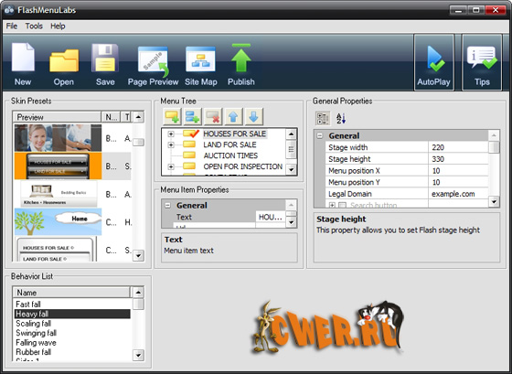 Flash Menu Labs - это мощный инструмент для быстрого создания Flash (Флеш) меню для Вашего вебсайта. Даже новички без знания ActionScript могут успешно создавать меню за считанные минуты! Вы хотите современное Flash (Флеш) меню с впечатляющими эффектами, анимацией притягивающей взгляд и нетривиальной структурой, но не хотите тратить месяцы на кодирование, отладку и настройку внешнего вида? С Flash Menu Labs Вы получите все эти и многие другие возможности всего за несколько минут!
