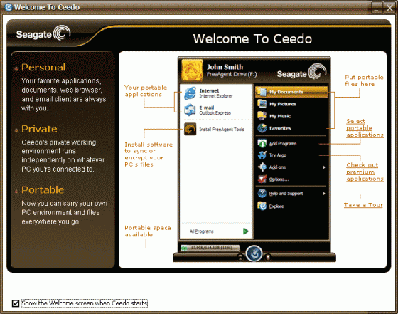 Программа для работы с USB флеш-накопителями и прочими переносными устройствами. При помощи Ceedo Enterprise можно установить на съемный накопитель практически любую программу. Ярлыки всех утилит, устанавливаемых на флешку, помещаются в удобное меню, которое запускается автоматически после того, как накопитель подключается к компьютеру. После подключения устройства вас будет приветствовать диалоговое окно со стандартным для Windows набором вариантов автозапуска, дополненное, однако, парой новых опций, наиболее важной из которых была опция запуска Ceedo – встроенного в FreeAgent Go программного обеспечения с интерфейсом типа Windows.
