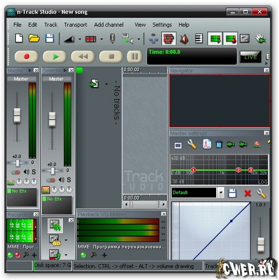 n-Track Studio - программа представляет понофункциональную многотрековую аудиостудию, позволяющую в домашних условиях создавать свои собственные профессиональные музыкальные композиции. Программа поможет вам превратить ваш компьютер в домашнюю звукозаписывающую студию. Вы сможете записывать и воспроизводить огромное число аудио и MIDI треков одновременно, накладывать всевозможные эффекты на каждый трек, работать с каналами и т.д. Кроме стандартных эффектов, программа позволяет подключать DirectX и VST 2.0 плагины от сторонних разработчиков. Также программа может работать с любыми стандартными или многоканальными 16 и 24-битными звуковыми картами.