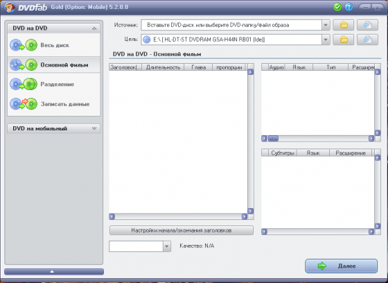 Мощный, многофункциональный программный продукт для копирования DVD дисков с возможностями гибкой обработки видеопотока. Программа является одной из лучших на сегодняшний день, из инструментов для копирования, разбиения, пережатия и конвертирования DVD дисков с фильмами. Снимает все защиты и ограничения с диска и при желании пережмет диск большой емкости и вместит его в обыкновенную пустую DVD болванку с минимальными потерями качества (DVD9->DVD5) или разобъет фильм на два диска с полным переносом его меню, удалит всю рекламу, запишет только фильм и многое другое. Программа имеет интуитивно понятный, мультиязычный интерфейс включая русский.