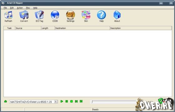 Arial CD Ripper - удобный инструмент для снятия треков с компакт-дисков и записи их на жесткий диск в виде MP3, WAV, OGG, FLAC, APE файлов, также программа позволяет "перегонять" музыку из формата в формат. Поддерживается работа с CDDB.