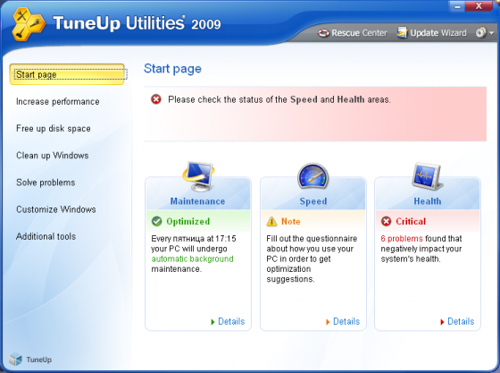 TuneUp Utilities 2009 - компактный пакет системных утилит с мощными возможностями: чистка и исправление ошибок системного реестра, восстановление и безвозвратное удаление данных, оптимизация оперативной памяти, менеджер процессов и автозагрузки, корректное удаление ставшего ненужным ПО, управление сетевыми параметрами, оптимизация интернет-соединения, настройка "скрытых" параметров системы, подробная информация о системе и многое другое.