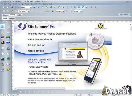 SiteSpinner® Pro is a Windows-based professional Web Design and Animation software tool that enables you to create rich, interactive Websites for desktop browsers and mobile devices - quickly and easily.