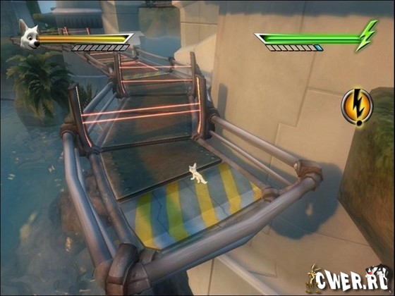 Сильный и стремительный, благородный и решительный, гениальный и фантастически обаятельный. Это все – о нем! Не верьте, что неповторимый пес по имени Вольт – тот неуклюжий щенок, о котором рассказывается в мультфильме. Мы докажем вам, что он – самый настоящий супергерой, а его телешоу – истинная правда. Ну кто еще, скажите, сможет разнести врагов в тарарам оглушительным лаем или поджарить им пятки своим беспощадным взглядом-лазером! Всех, кто решит испытать таланты Вольта на деле, ждет потрясающее путешествие и настоящие приключения. Это только на первый взгляд малыш Вольт и его хозяйка Пенни вступили с коварным злодеем Калико в неравную схватку. Мы еще посмотрим, кто окажется сильнее! Используя суперспособности Вольта или задействуя шпионские навыки Пенни, ты сможешь решить исход этого смелого предприятия. Помоги героям преодолеть все препятствия и одержать верх над злым гением!