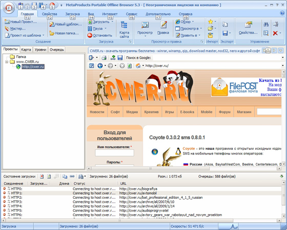 Скачать MetaProducts Portable Offline Browser 5.3.2932 SR1 (6,6 МБ):