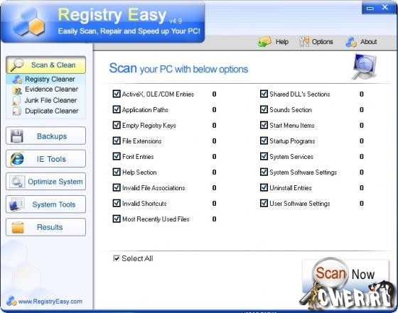 Программа, предназначенная для очистки реестра и оптимизации операционной системы Windows. Данная программа проверяет Ваш компьютер и легко находит и устраняет причины ошибок, вызывающих проблемы с компьютером. Проверяя системный реестр, программа Registry Easy определит ошибки, связанные с нехваткой загрузочных программ, нехваткой системных шрифтов, недействительными ярлыками, недостающими dll файлами, неверными инсталляциями программ, неверными драйверами устройств. Кроме того, обнаруженные ошибки могут быть связаны с отсутствием связей между файлами и недостатком файлов помощи. Позвольте программе RegistryEasy очистить Ваш реестр безопасно и эффективно!