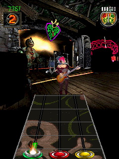 Игра для мобильных телефонов. Играй на мобильном телефоне, как на настоящей гитаре. Здесь не нужны медиаторы, струны и железные мозоли на пальцах. Эта игра превращает мобильник в настоящий музыкальный инструмент, на котором звучат мировые хиты. Фанаты рока просто сойдут с ума. Удиви друзей, порази родственников! Размеры экранов: 128x128, 128х160, 176х208, 176х220, 240х320, 352х416.
