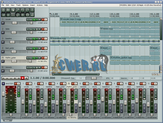 REAPER - компактный аудиоредактор для создания, редактирования и записи многоканальных аудиотреков с возможностью обработки каждого трека по отдельности. REAPER позволяет применять во время обработки аудио множество эффектов, поддерживает технологии ASIO, Kernel Streaming, WaveOut и DirectSound воспроизведение и запись. Поддерживает работу с файлами в форматах WAV, OGG, MP3, MIDI (чтение) и WAV, MIDI (запись), управление уровнем громкости, изменение границ трека, допускает многоуровневый откат/повтор выполненных операций и многое другое.