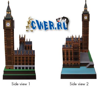 Башня Биг-Бен была возведена в 1858 году, башенные часы были пущены в ход 21 мая 1859 года. Высота башни 61 метр (не считая шпиля); часы располагаются на высоте 55 м от земли. При диаметре циферблата в 7 метров и длиной стрелок в 2,7 и 4,2 метра, часы долгое время считались самыми большими в мире. Биг-Бен стал одним из самых узнаваемых символов Великобритании, часто используемым в рекламе и фильмах.