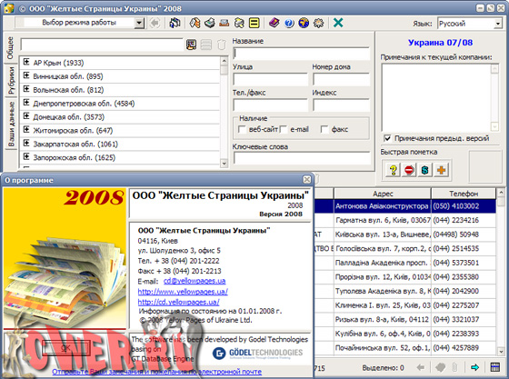 Скачать информационно-справочную систему "Желтые Страницы Украины 2008" (91,6 МБ):