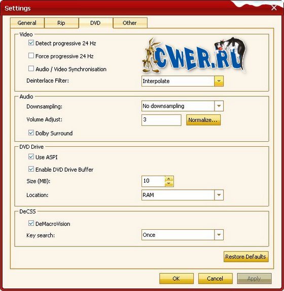 - Возможность находить информацию о данном DVD в Интернете;