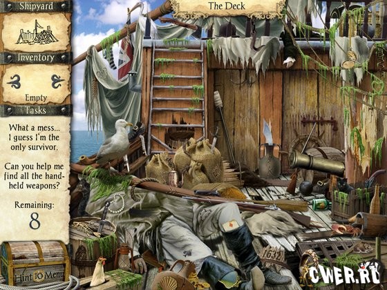 Новая захватывающая игра, сюжет которой основан на произведении Даниэля Дэфо "Жизнь и удивительные приключения Робинзона Крузо". Сочетание таких популярных жанров, как квест и "я ищу" делают эту игру ещё более привлекательной. Главный герой, смелый моряк из Йорка оказывается выброшенным на необитаемом острове после ужасного кораблекрушения. С вашей помощью ему предстоит пройти все испытания, уготовленные ему судьбой - исследовать остров, сражаться с каннибалами, побывать в затерянной деревне и наконец, построить новый корабль и покинуть злополучный остров!