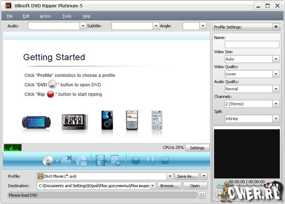 Кроме этого, программа анализирует тип процессора и в зависимости от этого выбирает наилучшую скорость риппинга. Xilisoft DVD Ripper Platinum полностью задействует возможности последних процессоров и позволяет выполнять пакетное преобразование файлов.