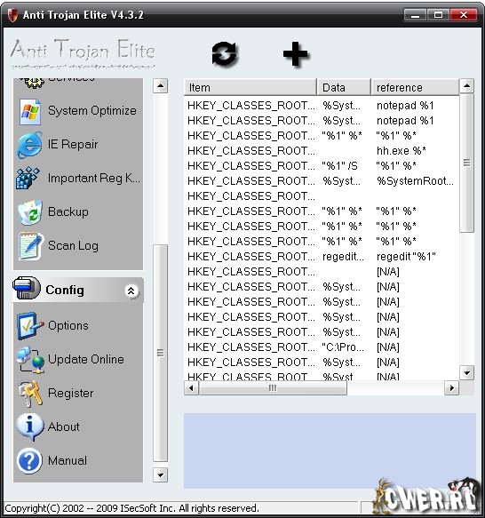 Anti-Trojan Elite - программа для очистки компьютера от таких вредоносных файлов, как трояны, кейлогеры и прочее. Сканирует не только жесткий диск (включая архивы ZIP CAB), но и смотрит на то, какие процессы запущены. Также располагает менеджером сетевых процессов, при помощи которого можно определить, где запущен нежелательный процесс. Кроме этого, вы можете просмотреть ключи и значения реестра и удалить подозрительные, починить Internet Explorer, оптимизировать работу Windows и многое другое. Помимо этого, в состав программы входят утилиты для блокирования подозрительных TCP-соединений и процессов, а также для исправлений ошибок в реестре, вызванных деятельностью вредоносных программ.
