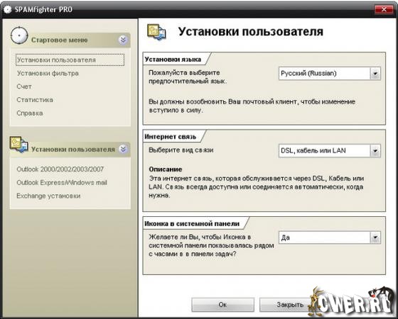 SPAMfighter - дополнение к Microsoft Outlook и Outlook Express (поддерживаются Outlook 2000/2002 (XP) Outlook 2003 и Outlook Express 5.0 и выше) для эффективной борьбы со спамом - помогает отсеять значительную часть поступающего в почтовый ящик спама.
