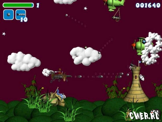 Веселая стрелялка о похождениях отважного пилота. На своем пути он постоянно встречает очень смешных противников, которые изо всех сил стараются ему помешать. Они кидаются в него шкафами, стреляют из пушек и сооружают баррикады, парящие прямо в воздухе.