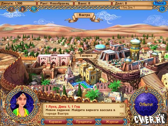 Увлекательная игра Tradewinds Caravans перенесет вас в древнюю Азию. Вы, начинающий торговец, должны будете путешествовать по городам, заходить на рынки, в таверны, разговаривать с разными людьми. Они могут попросить вас выполнить какое-нибудь задание, и, если вы его выполните, заплатят вам. На вырученные деньги можно купить товар, нанять войско для охраны каравана. Товар можно продать в другом городе, где цены выше.