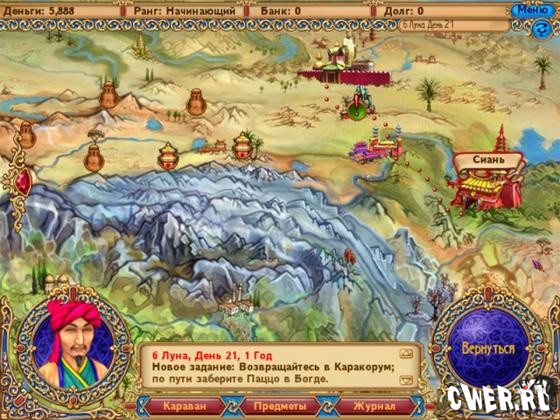 В этой игре создан целый виртуальный мир, живущий по своим законам. И в этом мире есть все: торговля, битвы с бандами кочевников в пустыне и с охраной городов, общение с персонажами, когда от вашего решения зависит дальнейшее развитие игры. И как результат, вы можете создать в нем могущественную торговую империю, контролирующую весь Великий Шелковый Путь.