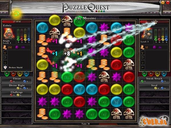 Puzzle Quest: Challenge of the Warlords, сочетающая в себе классическую головоломку по правилу "match-three" (убираем 3 или более одинаковых элемента с поля) и ролевые элементы, стала хитом весны на PlayStation Portable и Nintendo DS. Творение австралийской студии Infinite Interactive (создатели популярной пошаговой стратегии Warlords, в чьей вселенной и разворачиваются события PQ) завоевало сердца как критиков, так и рядовых игроков. Пользовалась популярностью и демо-версия для "персоналок", вышедшая примерно в то же время. Наконец, Puzzle Quest доступна и для PC!