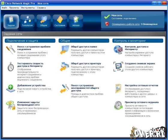 Network Magic поможет вам управиться с сетью, даже если вы совсем ничего в этом не смыслите. Теперь вы сможете отсылать документ на печать с любого компьютера, обмениваться файлами в локальной сети, решать возникающие проблемы с помощью мастера работы сети, даже восстанавливать беспроводные соединения и защищать их от вторжений извне.