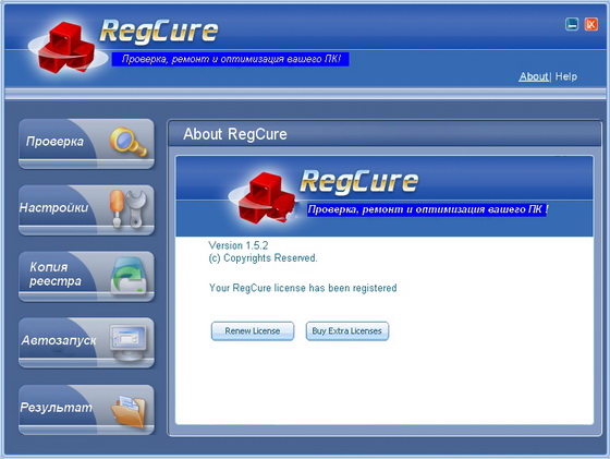 Скачать RegCure 1.5.2.7 Portable Rus (2,67 МБ):