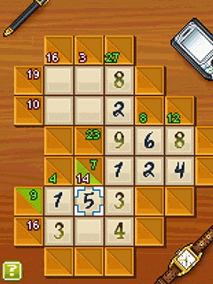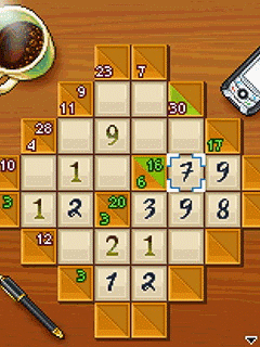 Игра для мобильных телефонов. Заходите в уютное кафе популярной японской логической игры Kakuro. Несколько режимов игры, возможность завоевать звание Мастера Какуро и выгрузить свой рекорд на сервер позволят провести не один час за этой игрой. Присутствие виртуального игрока делает эту версию игры еще более интересной. Размеры экранов: 240x320.