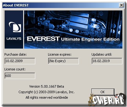 Скачать EVEREST Ultimate Engineer Edition v5.00.1667 Beta (9,9 МБ):