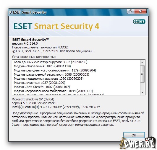 Скачать ESET Smart Security Home Edition 32-Bit v4.0.314 (35 МБ):
