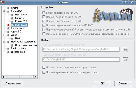 AnyDVD - предназначена для снятия защиты с любых DVD-дисков, так что вы сможете просматривать DVD-фильмы на компьютере с DVD-ROM, региональный код которого не соответствует этому DVD-диску. Даже если ваш привод не "обеззонен", у вас есть возможность копировать диски с любым региональным кодом напрямую с DVD-ROM на DVD±RW!