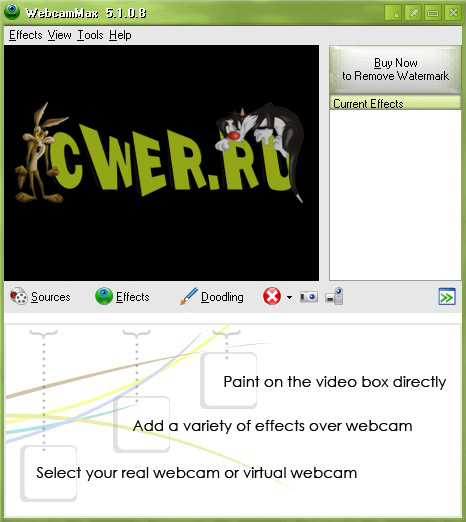WebCamMax - продвинутая утилита для работы с веб-камерой. Программа, добавляющая изумительные видеоэффекты на все вебкамеры, даже без реальной камеры. Программу можно использовать по умолчанию в таких приложениях, как ICQ, AIM, MSN, Camfrog, Skype, Paltalk, Yahoo, ANYwebcam, Stickam. Можно настроить WebcamMax Full так, чтобы она начинала функционировать и вести трансляцию с камеры только в том случае, когда объектив зафиксирует движение.