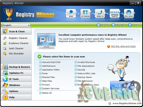 С использованием Registry Winner на регулярной основе ваша система будет поразительно стабильна. Registry Winner сканирует весь компьютер на возможные ошибки, которые ведут к проблемам в реестре. Происхождение у них может быть разное, но для программы это не имеет значения – она справиться со всем легко и быстро.