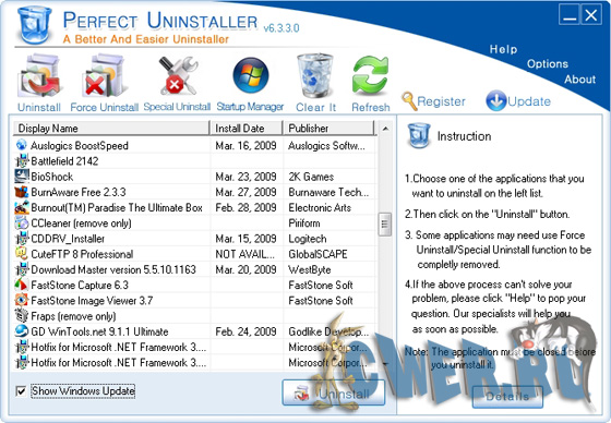 Perfect Uninstaller - отличная программа для полного удаления нежелательных программ, которые нельзя удалить с помощью стандартного диалога удаления и установки программ Windows. С этой программой вы сможете удалять ненужные приложения в вашей системе быстрее и легче. Стандартный диалог установки и удаления программ часто не может удалить определенные приложения или сломанные ключи реестра, в отличие от данной утилиты, программа не только позволит вам удалить приложения, но и очистит ваш ПК от поврежденных записей в системном реестре, улучшая производительность и скорость вашей системы. Кроме того, с помощью этого приложения вы сможете узнать детальную информацию о том, какие файлы и записи реестра затронула установка той или иной программы. Интерфейс программы прост и легок в использовании.