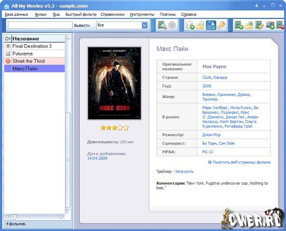 - легкий в использовании менеджер отданных фильмов - вы никогда не забудете, кому отдали фильм