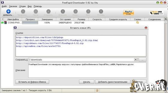 FreeRapid Downloader это менеджер загрузок с популярных файлообменников DepositFiles, LetItBit, Rapidshare и других.