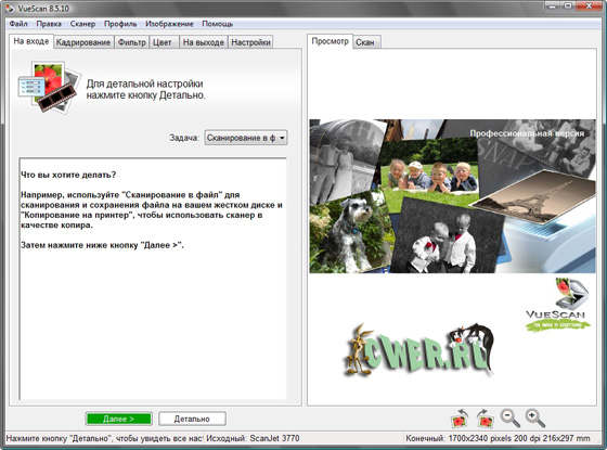 VueScan Pro - программа для работы со сканерами HP, Minolta, Nikon, Polaroid, Epson, Canon и другими. Может работать с внутренней глубиной цвета. VueScan Pro поддерживает автоматическую и ручную настройку большинства параметров и пакетный режим сканирования. Поддерживается более 500 моделей сканеров с определенным перевесом в сторону слайд-сканеров — Nikon, Minolta, Polaroid, Microtek, Epson...