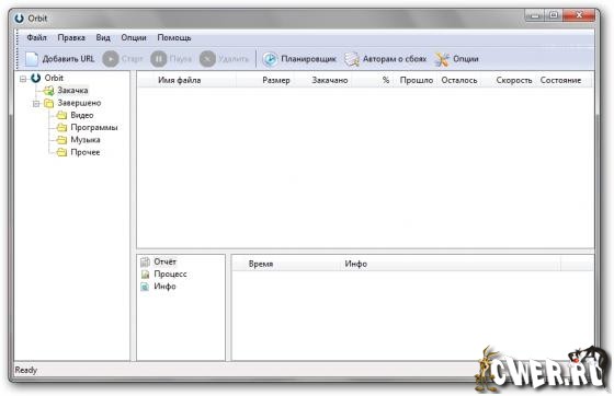 Orbit Downloader - менеджер закачек файлов из Интернета. Данная программа закачивает файлы в многопоточном режиме, поддерживает интеграцию с различными браузерами (Internet Explorer, Opera, FireFox и Maxthon), может закачивать файлы, расположенные в файлообменных сервисах, в частности, с RapidShare.com. Программа не требовательна к ресурсам компьютера. Orbit Downloader позволяет скачивать файлы по многим протоколам (HTTP, HTTPS, FTP, RTSP и MMS), может просматривать содержимое ZIP-файла до его скачивания и автоматически загружать файлы по расписанию, а также имеет расширенные настройки для работы через прокси-сервер.