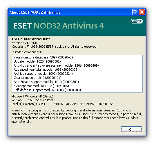 Скачать ESET NOD32 Antivirus 4.0.424 (29,38 МБ):