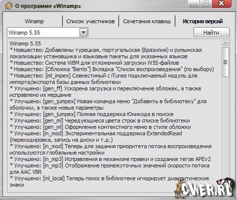 - Библиотека мультимедиа. Храните и проводите поиск ваших мультимедиа-файлов в одном месте. Возможность записи файлов из CD на компьютер и из компьютера на CD. Редактирование тэгов музыкальных файлов (исполнитель, композиция, альбом и др.). Доступ к интернет-радио и TV. Дополнительная информация (дискография, биография, обложки альбомов) о ваших любимых исполнителях и группах в плеере Winamp.